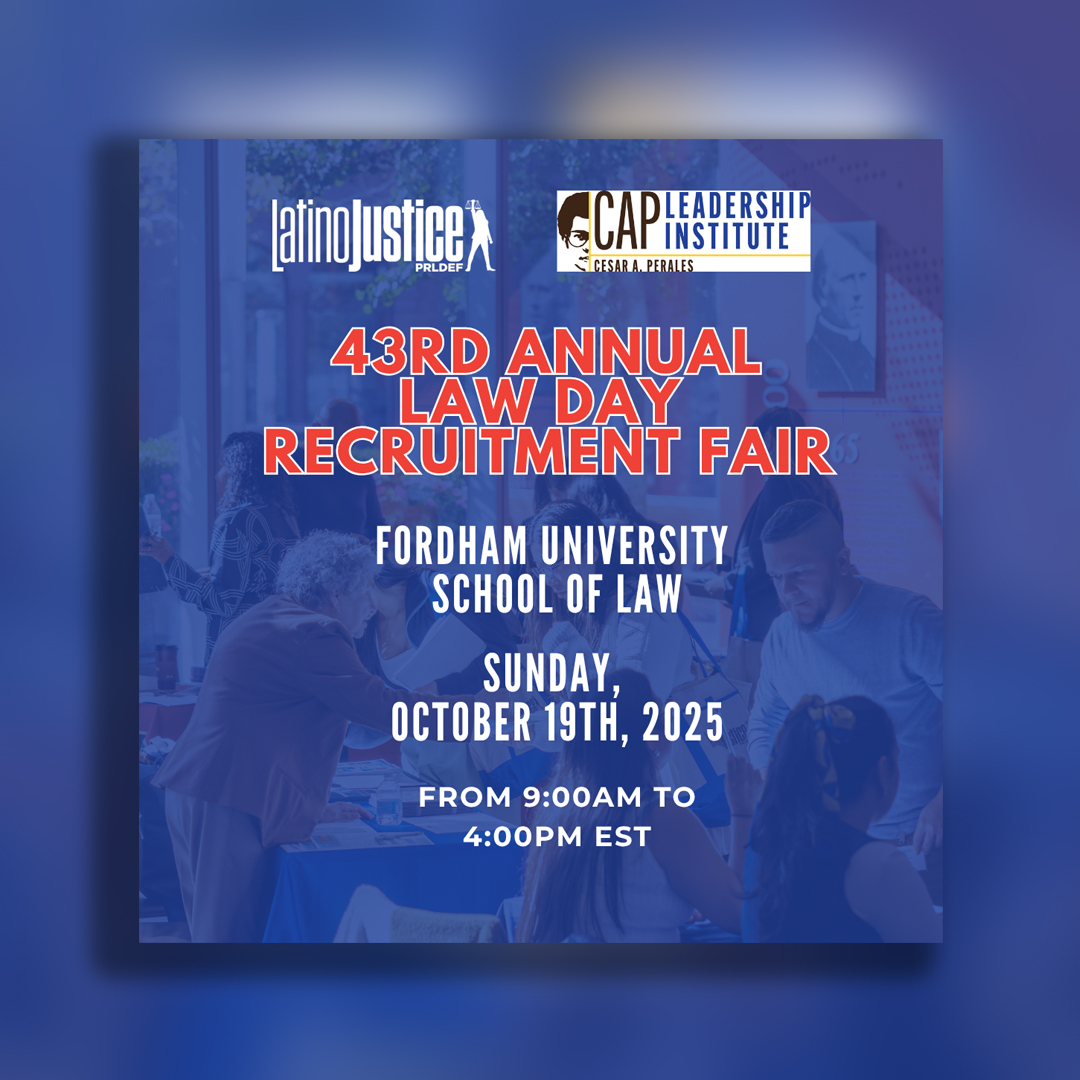 LatinoJustice PRLDEF hosts an Law Day Fair every Fall to connect scores of pre-law students from a variety of backgrounds and life experiences with dozens of law schools from across the country. The day-long event includes workshops, and presenters as well as opportunities to network with law school representatives and other law professionals.